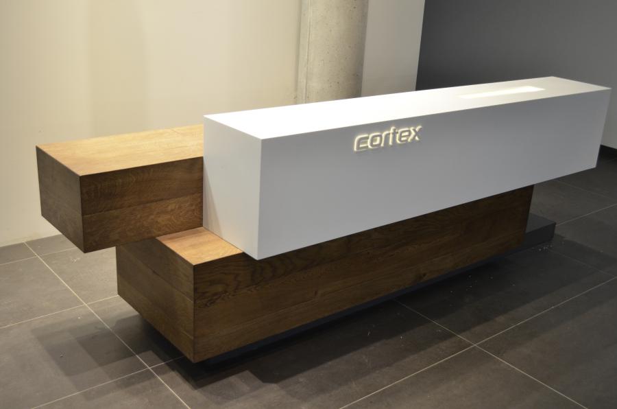 Cortex - recepční pult, Corian, kouřový dub